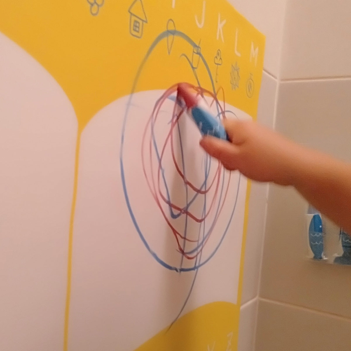 3、風呂上りにはキットパスは必ず消して、水滴をふき取ってください。(色が残ったままにしておくと消えなくなることがあります。)
