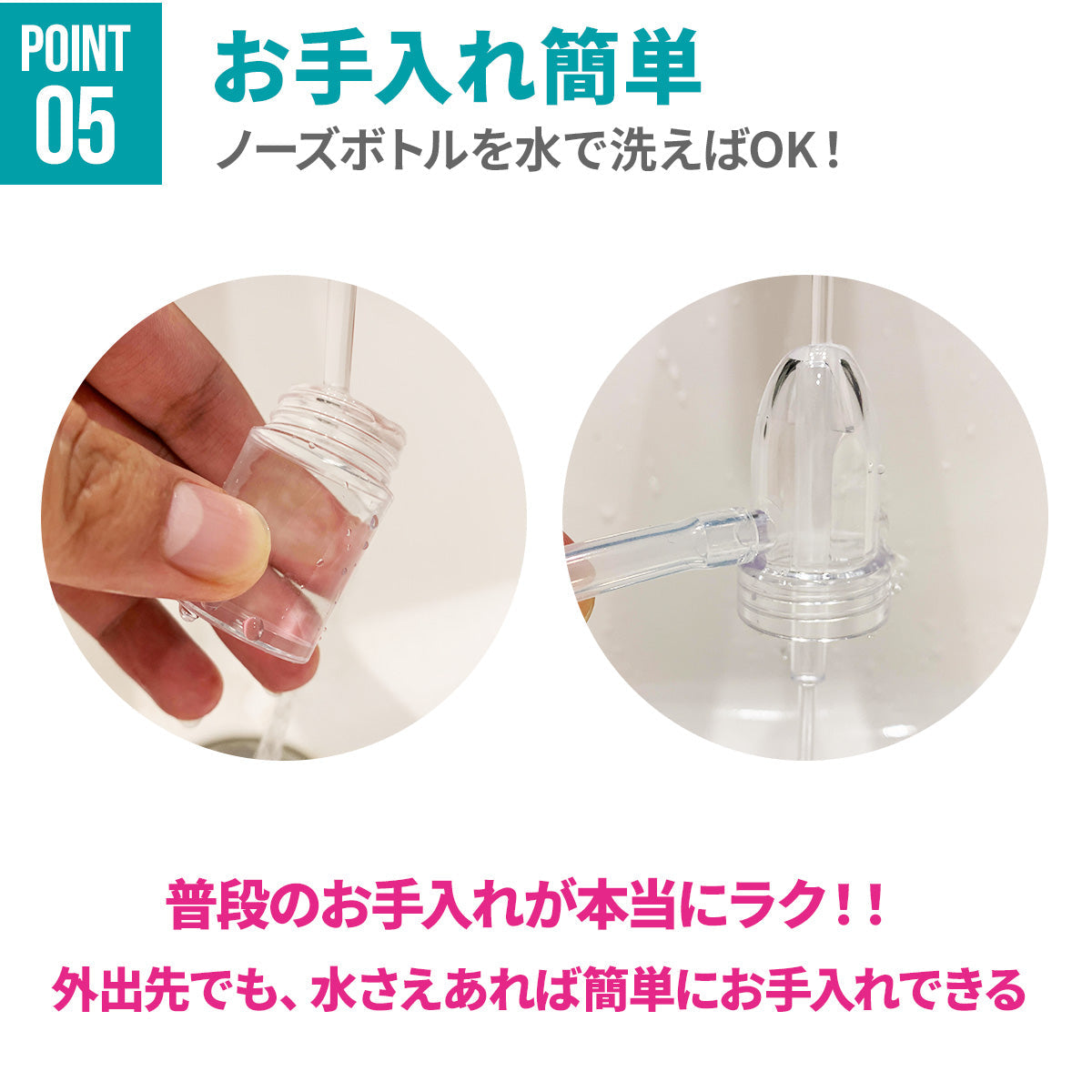 鼻水が管を逆流しにくいのでノーズボトルだけ洗浄します。