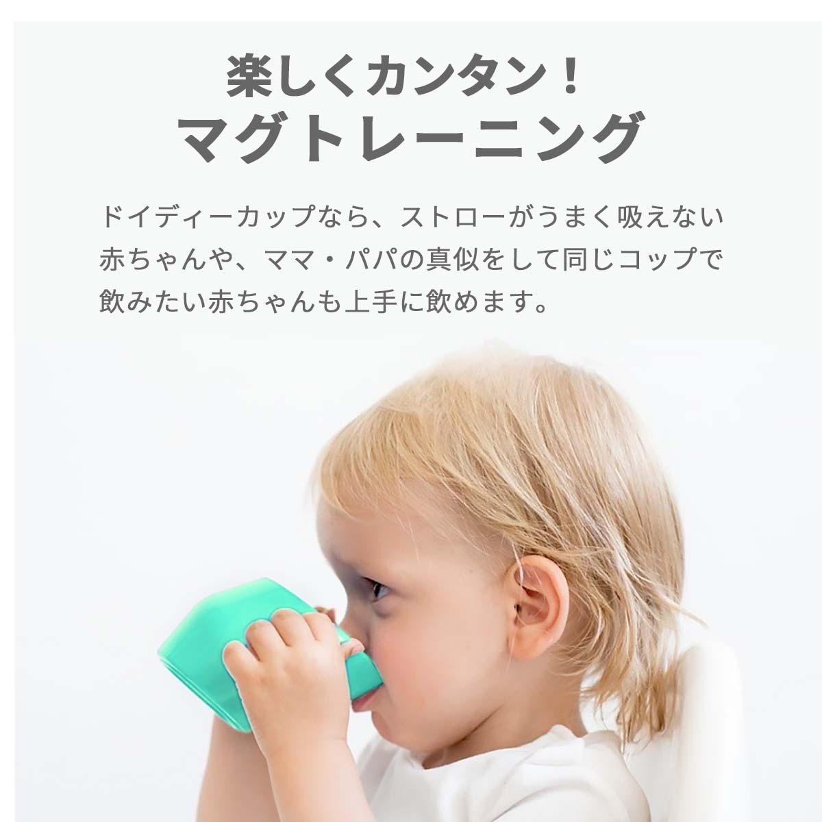 ストローがうまく吸えない赤ちゃんや、ママ・パパの真似をして同じコップで飲みたい赤ちゃんも、ドイディーカップなら上手に飲むことができるでしょう。