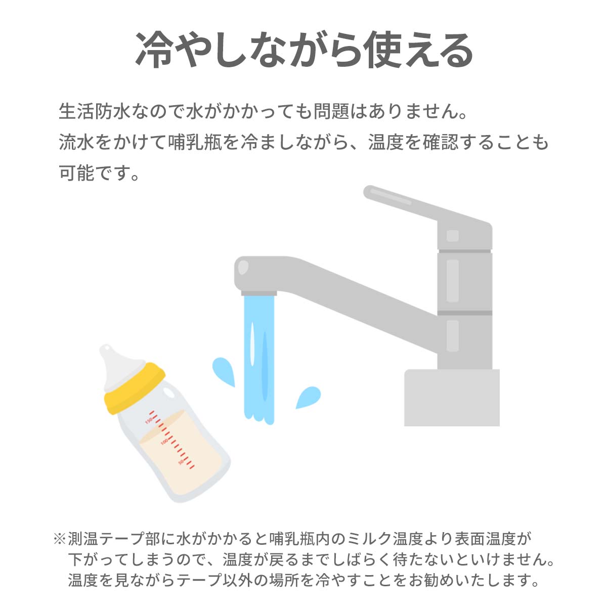 貼りっぱなしの温度計を見るだけでミルク温度がわかります。