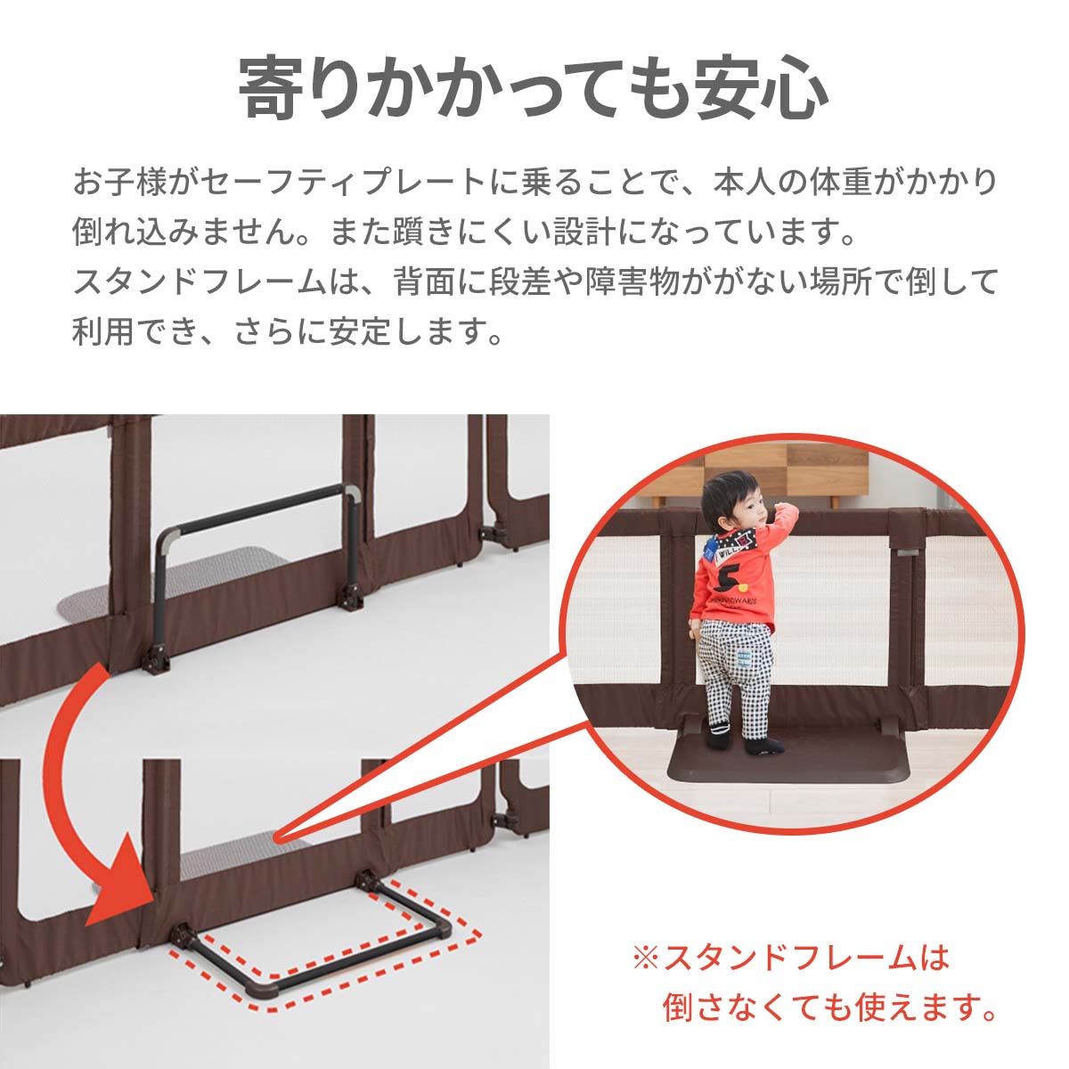 セーフティプレートにお子様が乗ることで本人の体重がかかり倒れ込みを防止!!