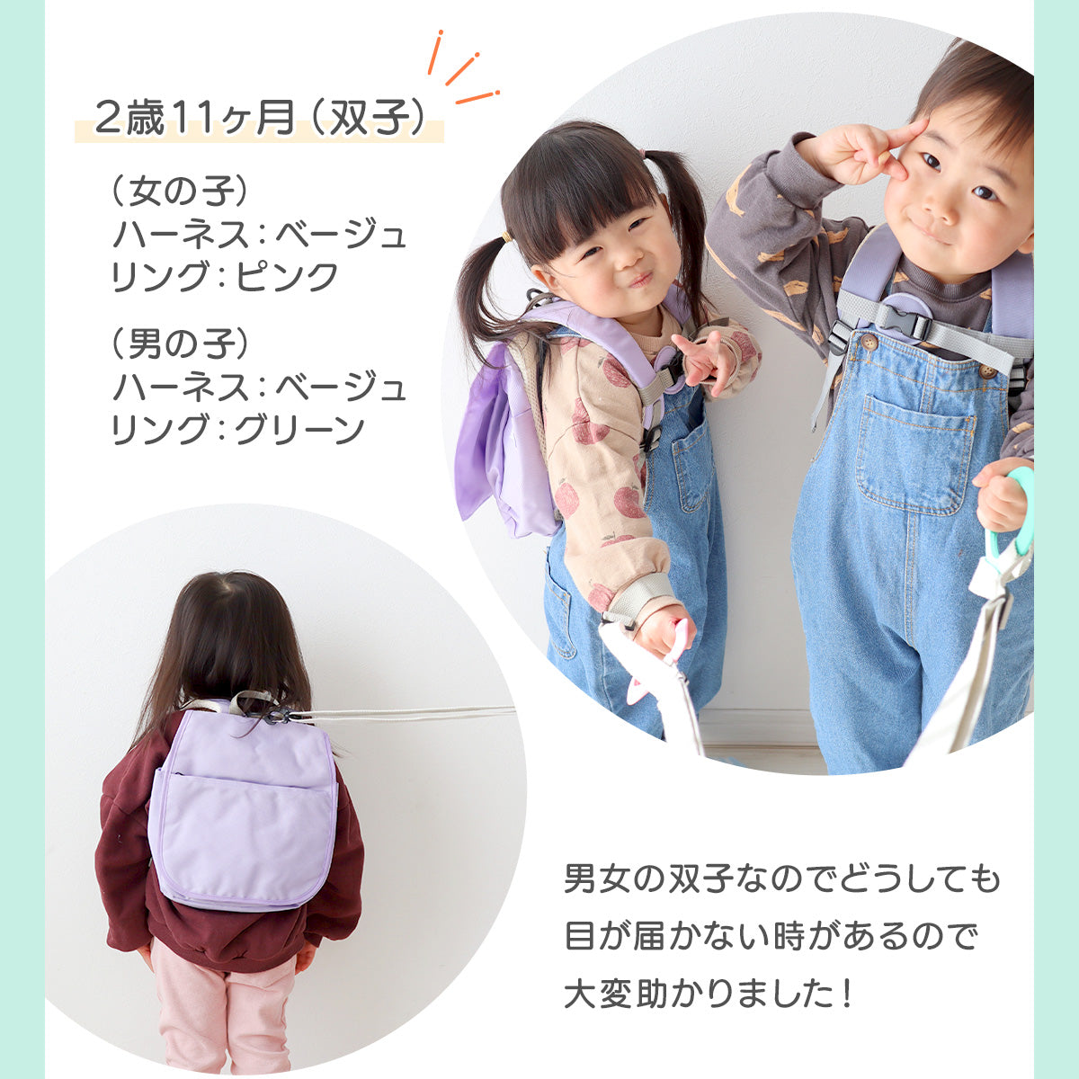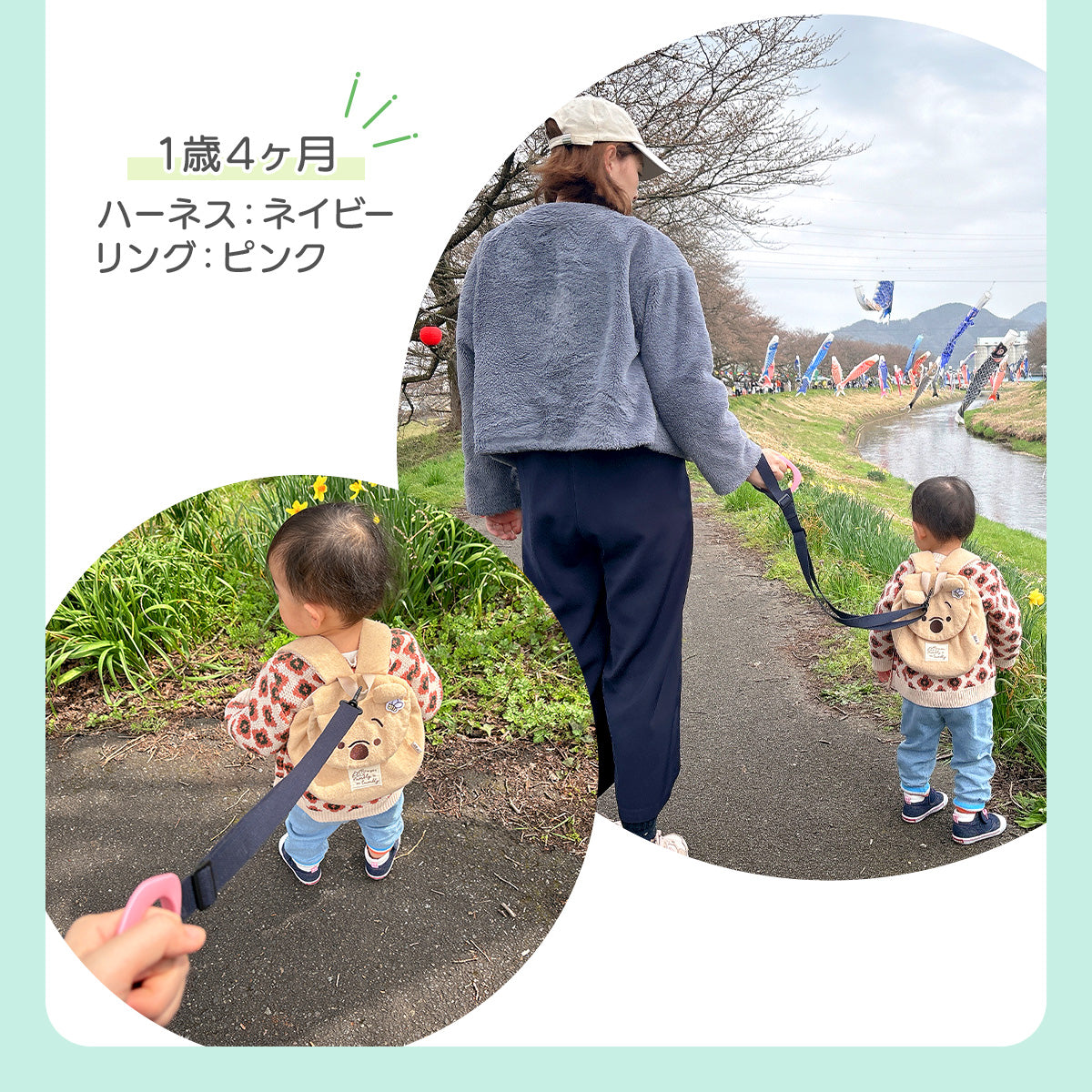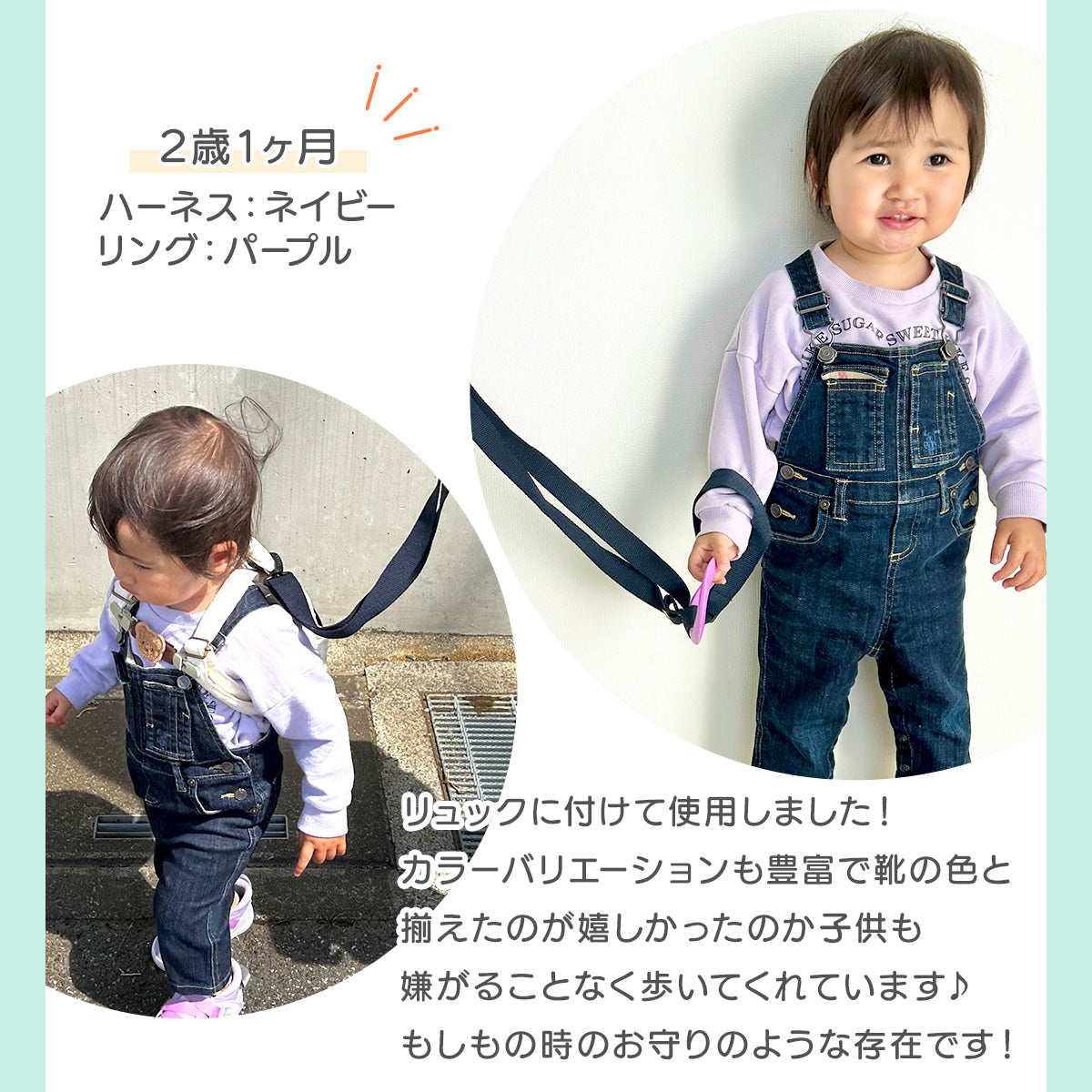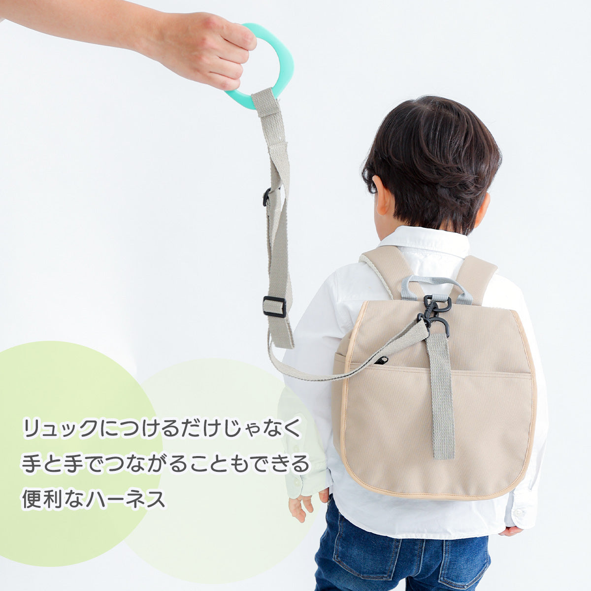 この迷子防止ハーネスは、自分で好きな場所を歩きたいお子様も、手をつなぎたくないイヤイヤ期のお子様も、わっかを持つだけ!!