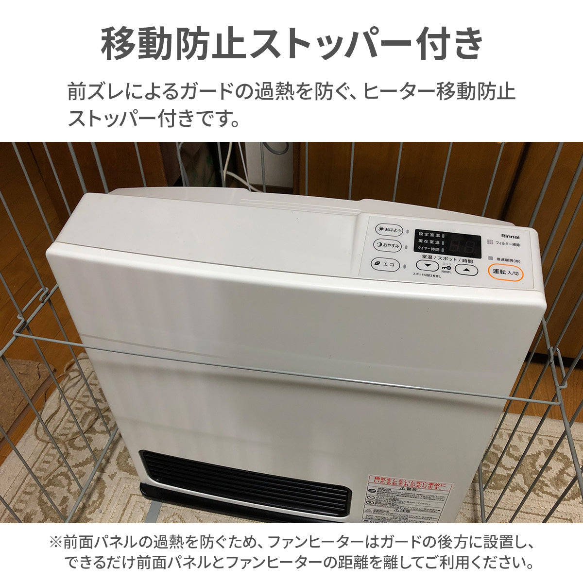 また、ヒーター移動防止ストッパーが付いており、設置した場所でしっかり固定!!