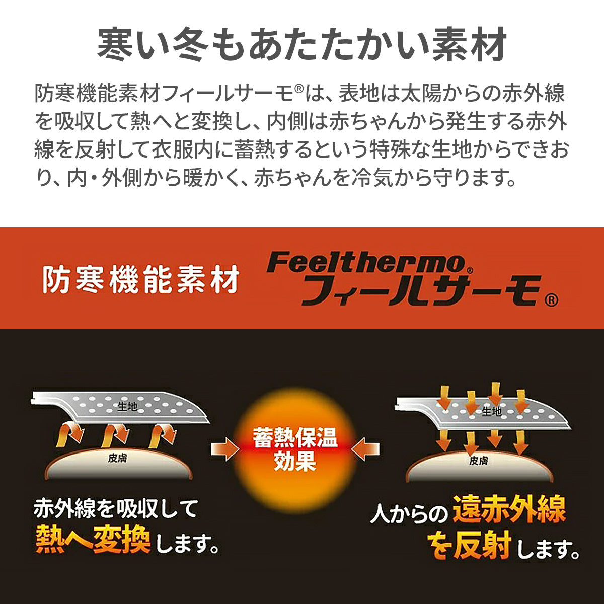防寒機能抜群の素材、フィールサーモ®を使用した、あったか~いケープ!! でも、あったかケープは使わないときは嵩張って、邪魔になるのよね…との声も…