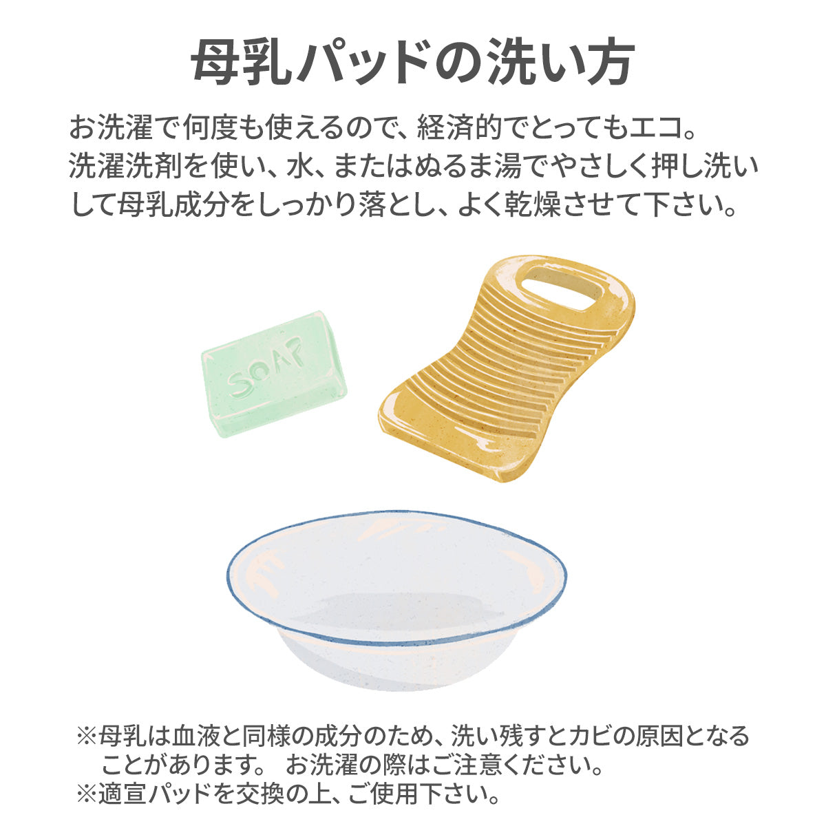 綿100%の母乳パッドが、母乳を漏れにくくママの乳頭も守ります!