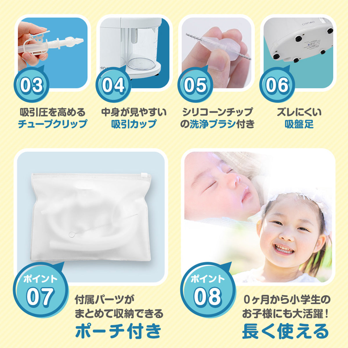 先輩ママパパによる欲しい機能が詰まっており、いつでも安心して吸引できます!