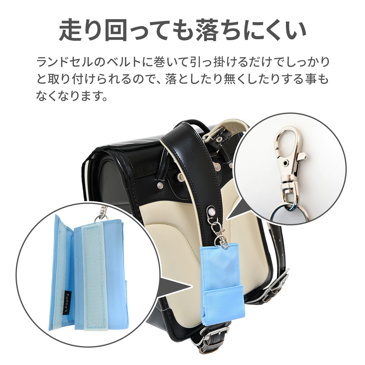 ランドセルの肩ベルトに巻くだけ!と、取り付けも簡単!