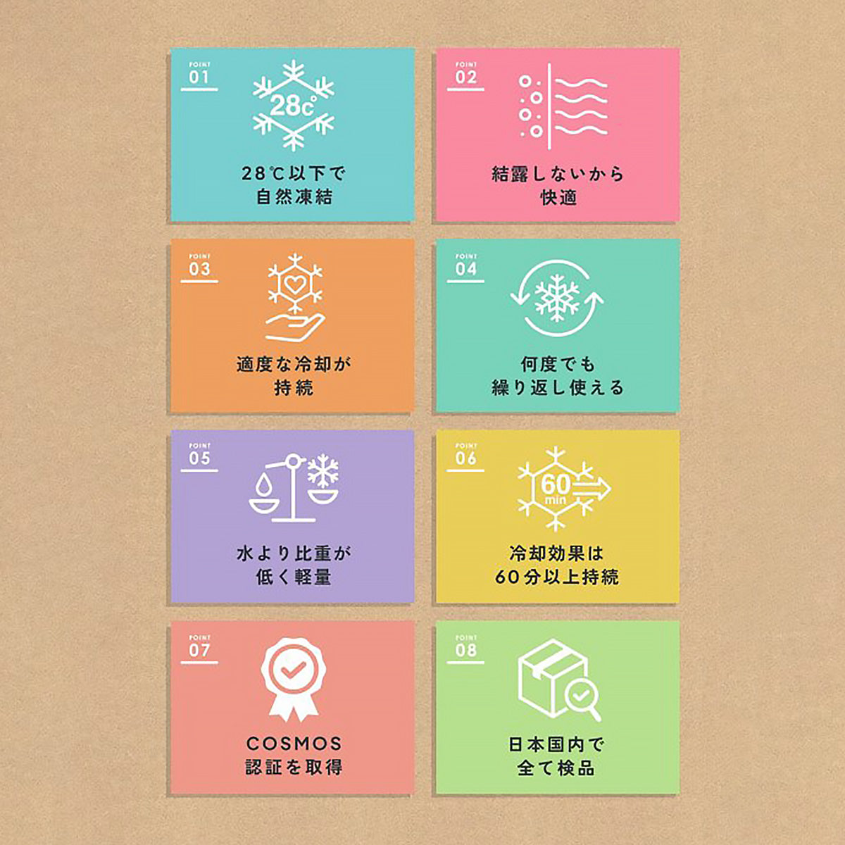 素材 | 外側:TPU 内容物:Temperture Control Ingrediment(温度制御成分) |