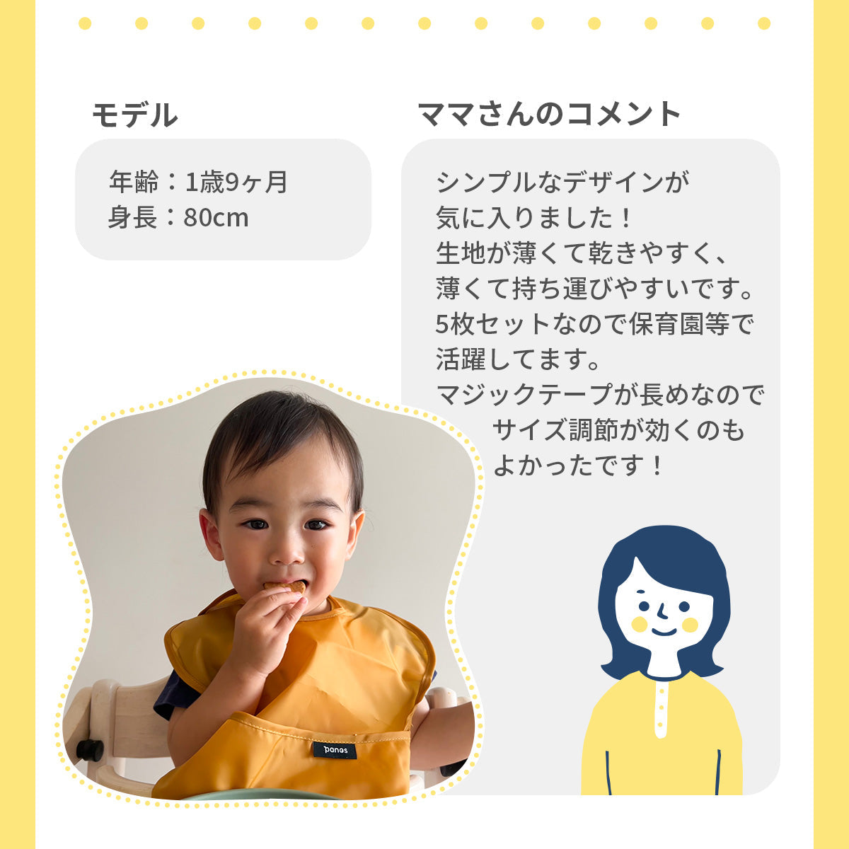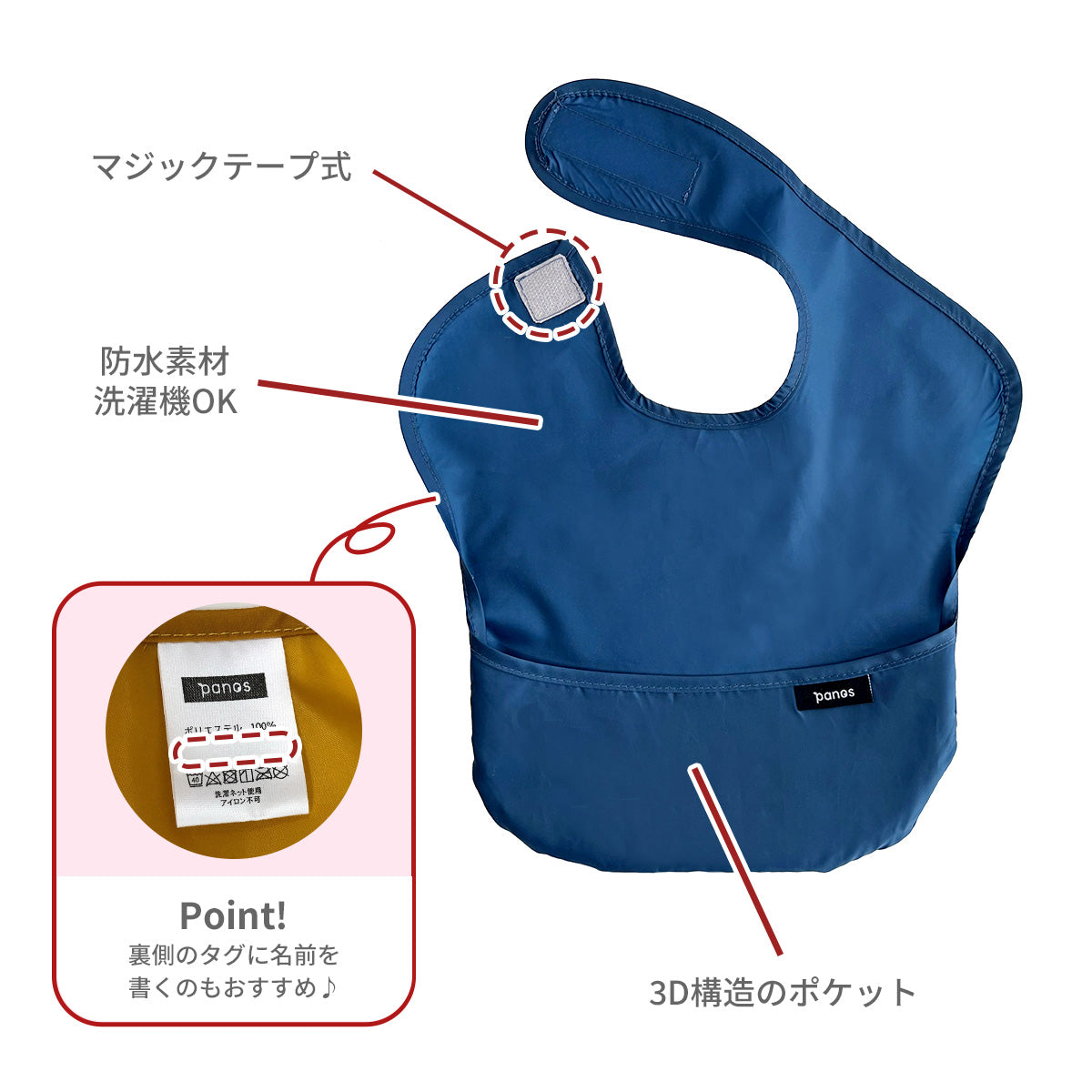 パノスのソリッドエプロンは、ママパパが「あったらいいな?」と思う機能が満載!