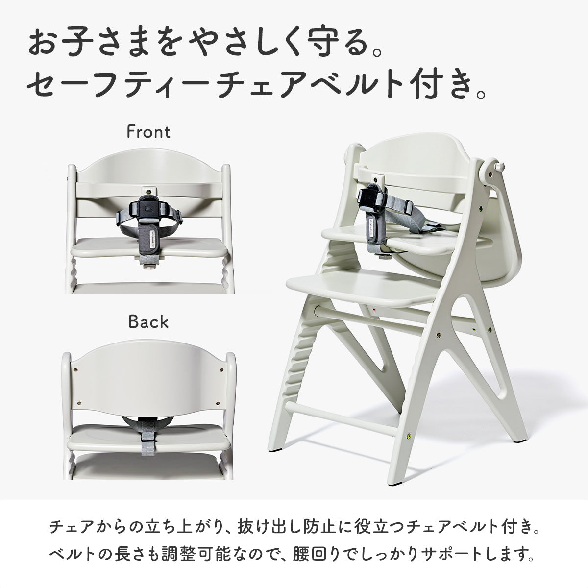 座板・足置きの高さが簡単に調節できるので、赤ちゃんから大人まで長い間お使いいただけます!