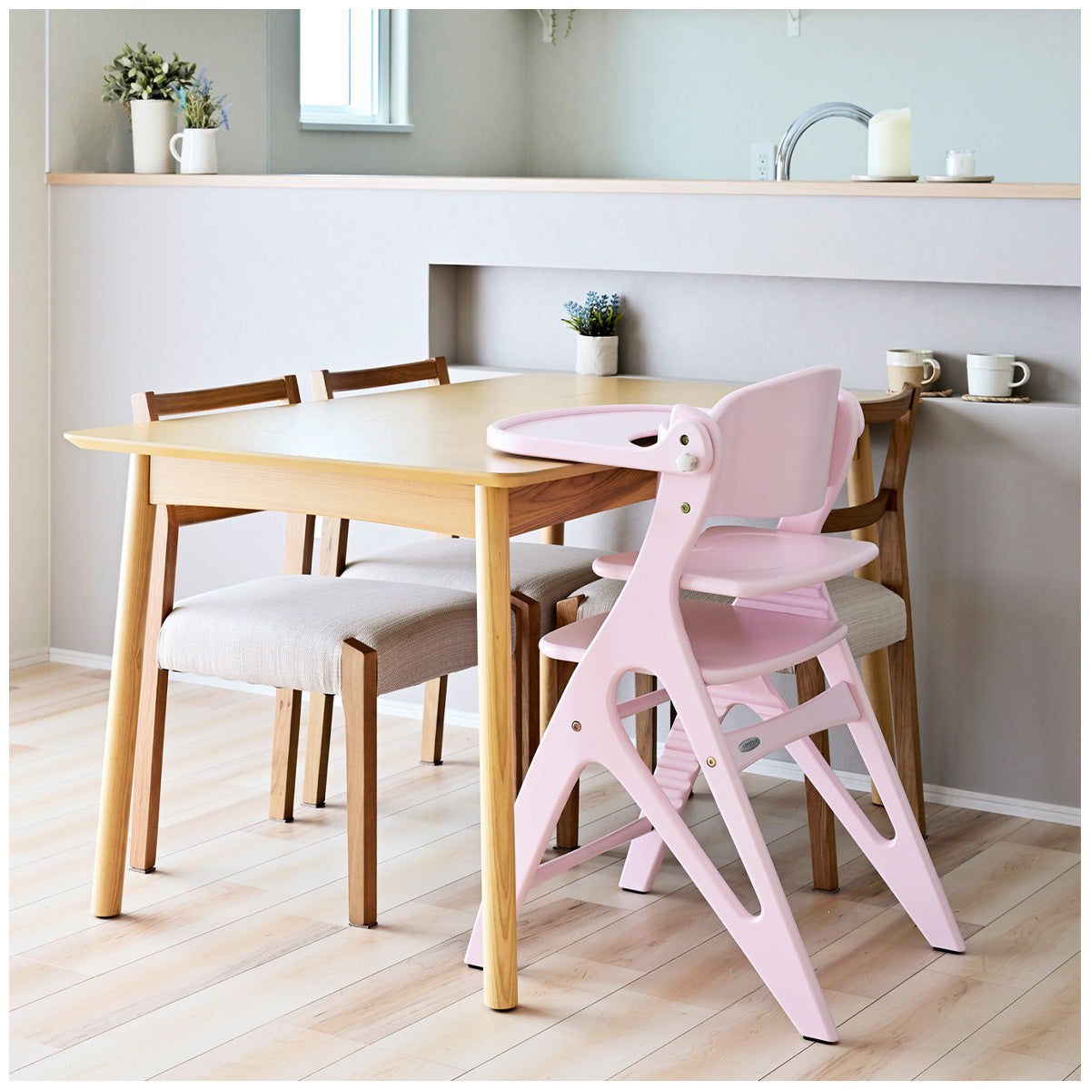 インテリアにもなりそうな、淡いカラーがステキなベビーチェア!