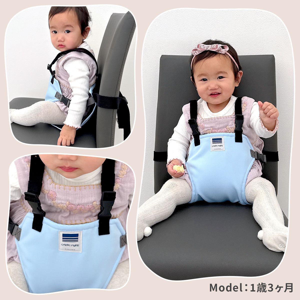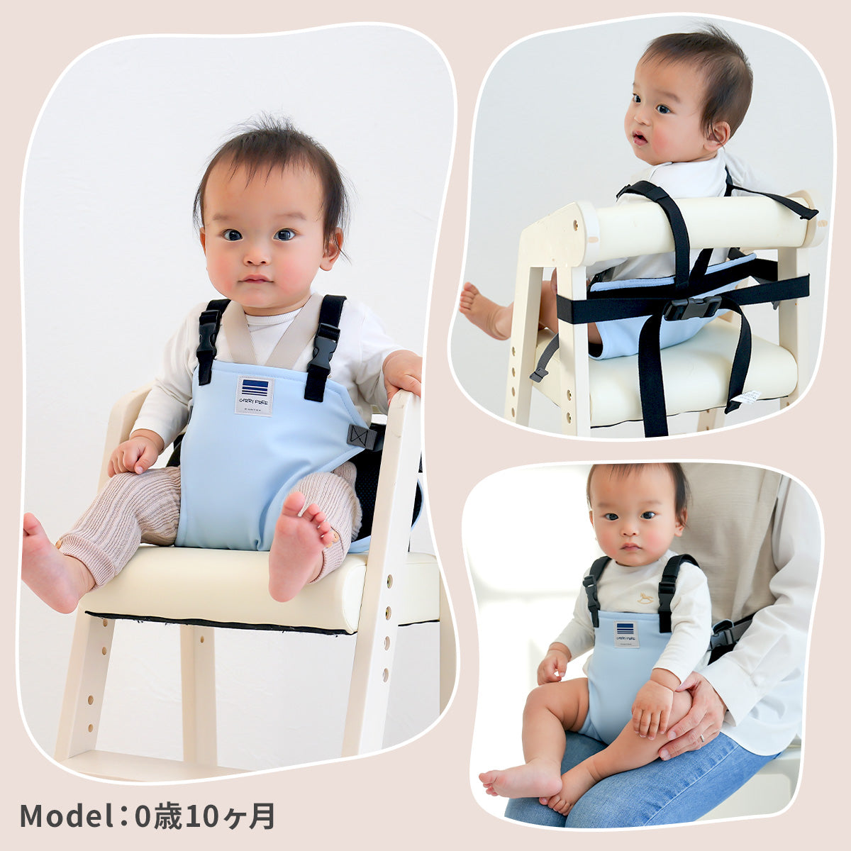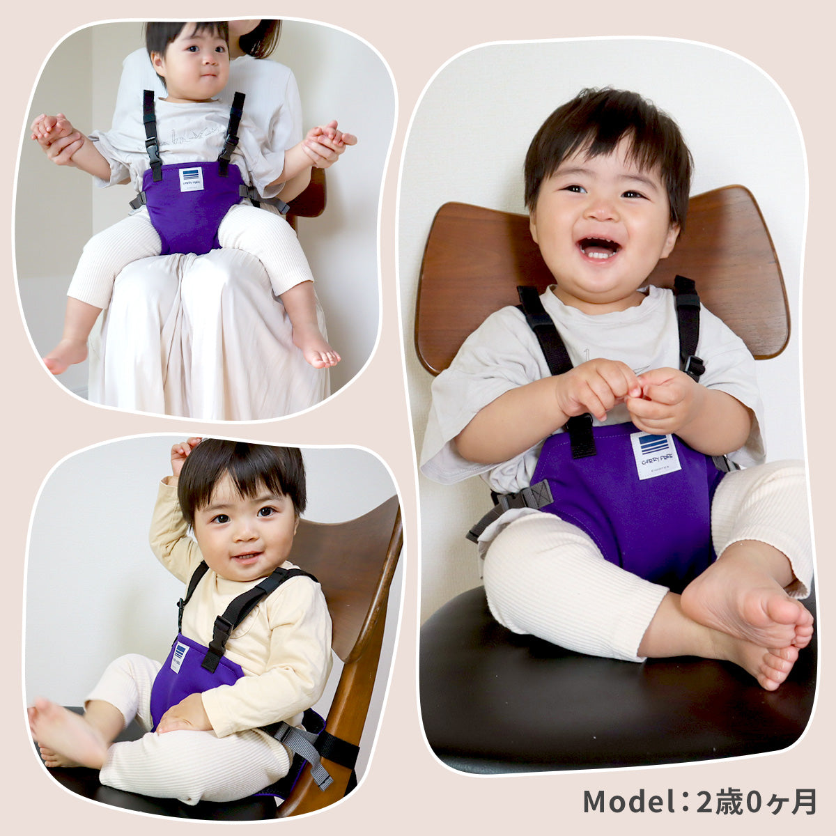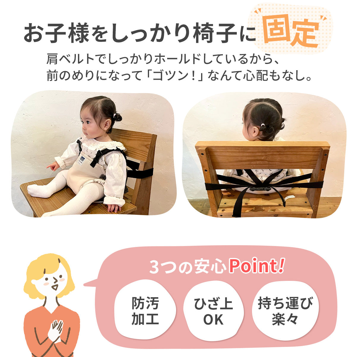 お子様が椅子や膝からずり落ちないように、肩ベルトと腰ベルトでお子様を守ります!!