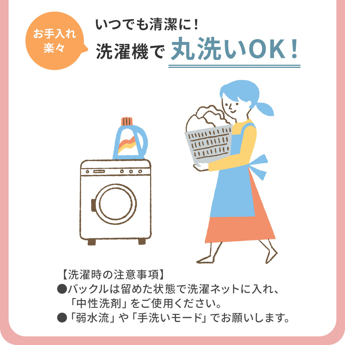 お手入れ方法 洗濯機洗い可(中性洗剤で、洗濯ネットに入れて「弱」や「手洗い」モードでお願いします)