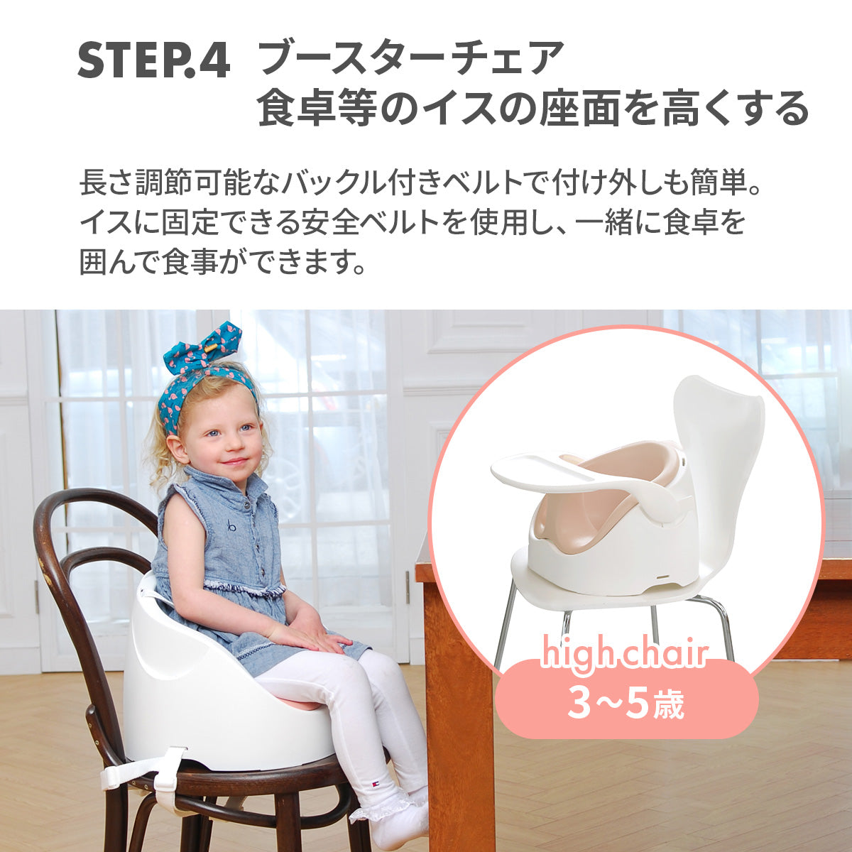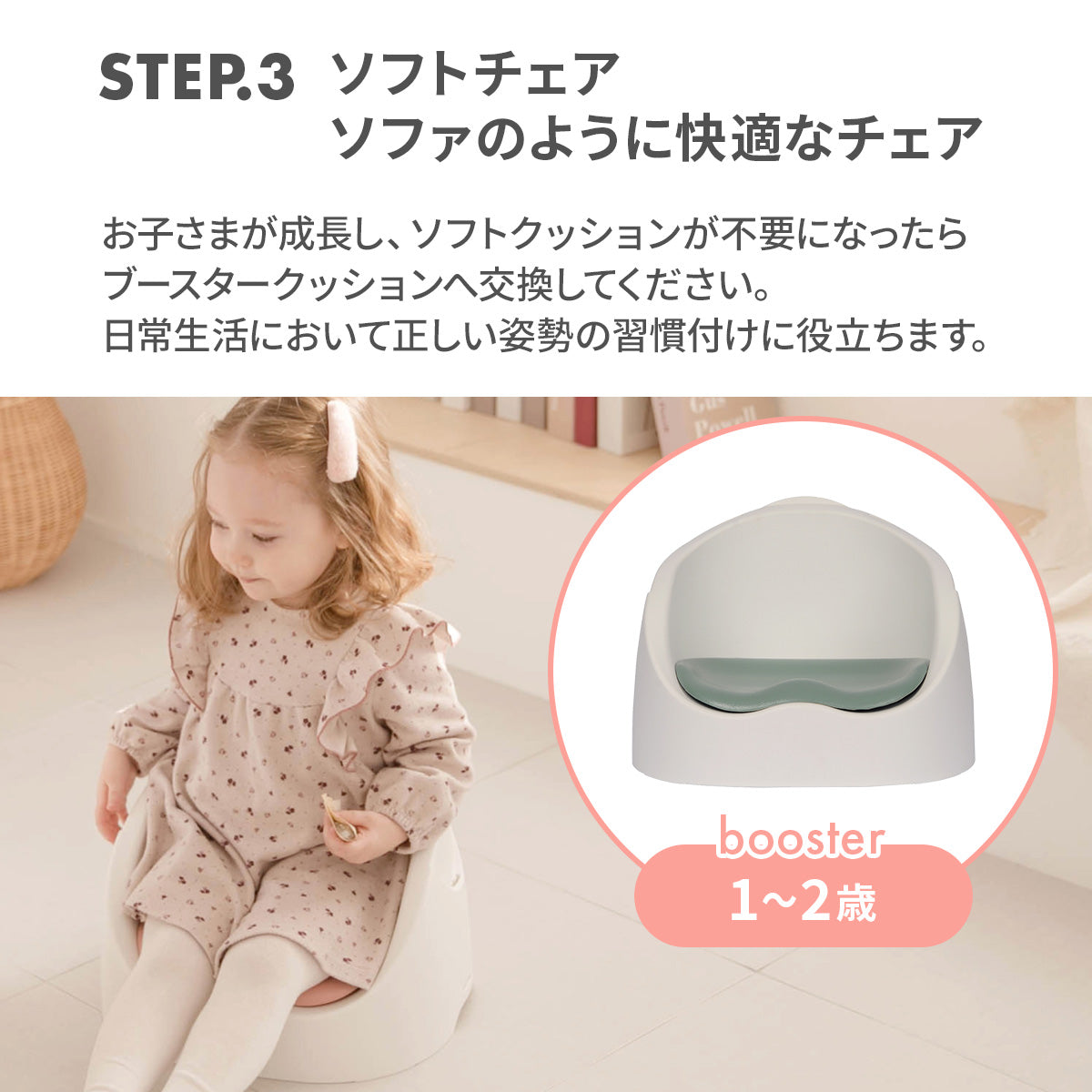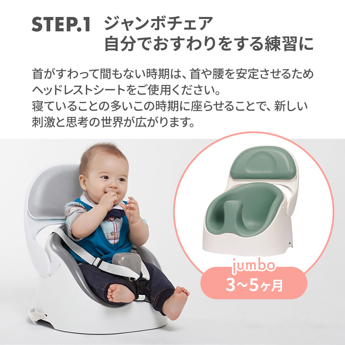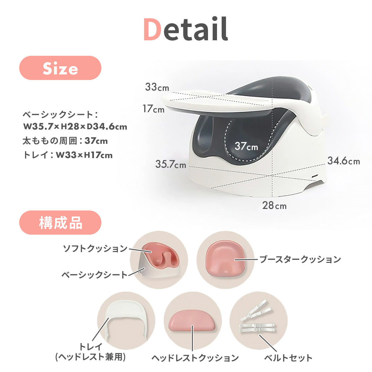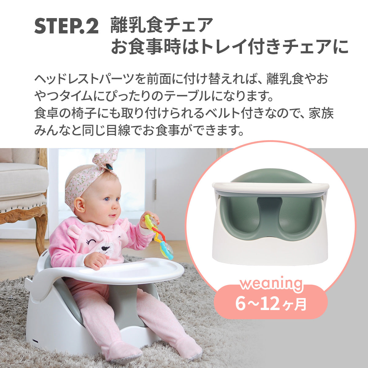 離乳食前はヘッドレストとして、離乳食が始まったら離乳食用テーブル、さらに取り外すとハイチェアやベビーチェアとして使えます!