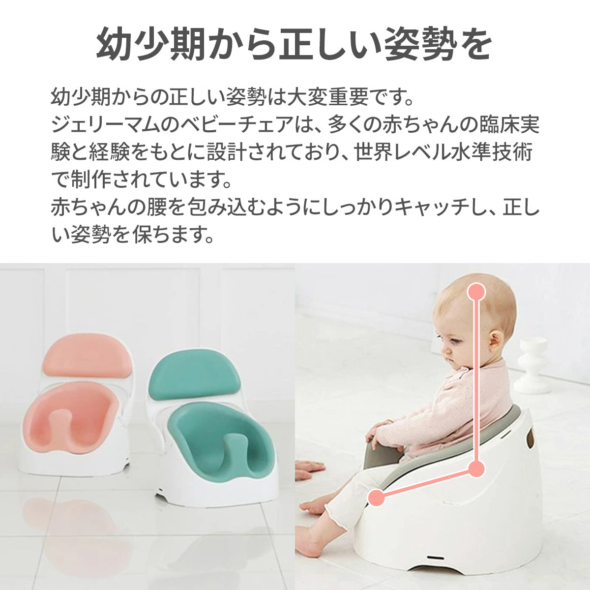 人間工学的設計により、赤ちゃんの腰を包み込むようまっすぐ支え、正しい姿勢の習慣付けにも◎!