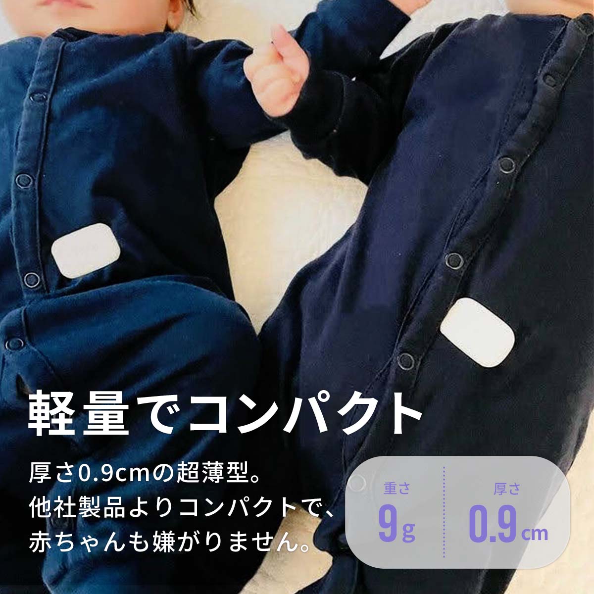 軽くて、薄型設計だから取り付けても赤ちゃんが嫌がりません。またアラームは本体から音が出るのではなく、スマートフォンに通知されるので、アラームによって赤ちゃんが起こされることもないので安心です。