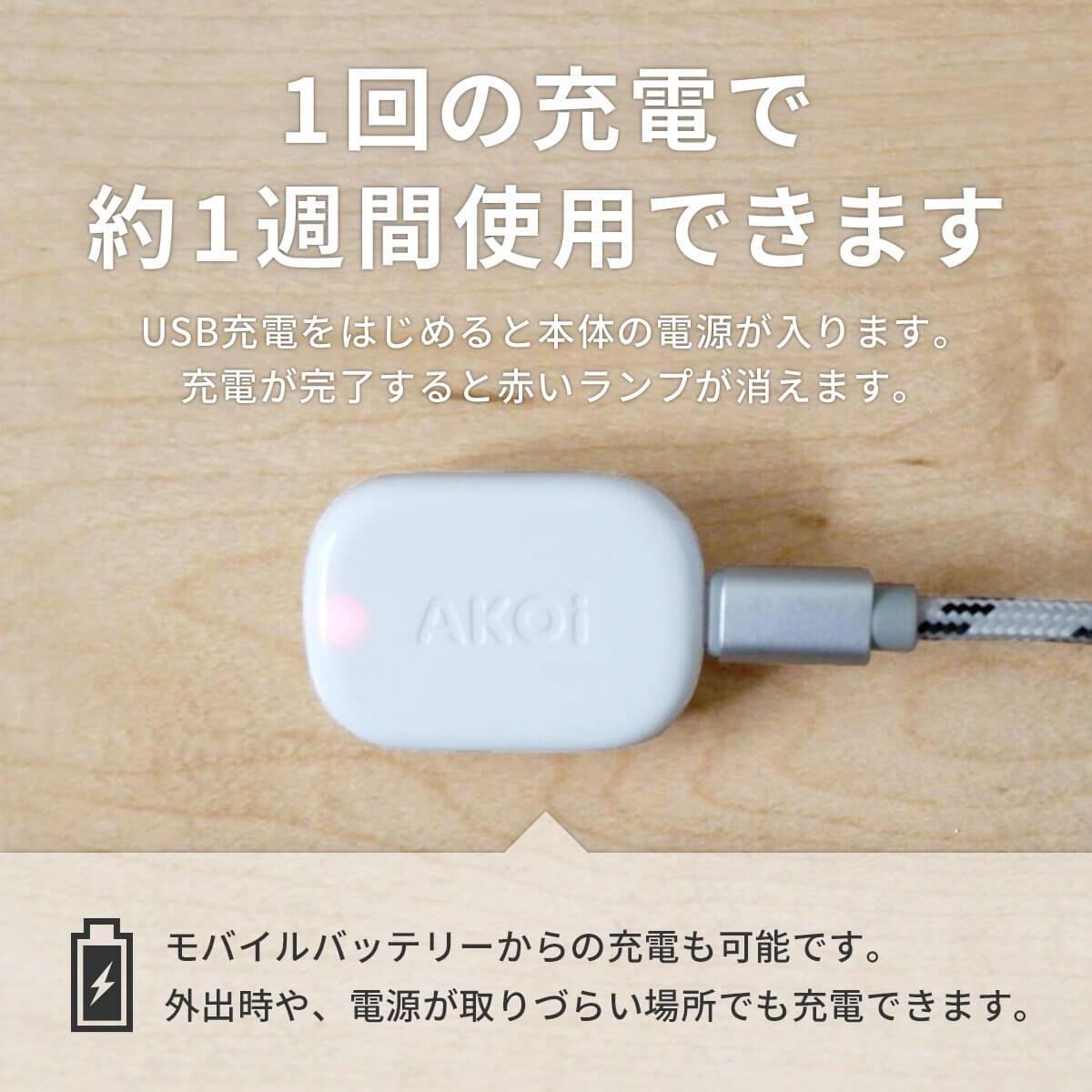 パッケージ内容 AKOi Heart本体、取付キャップ、取扱説明書、保証書、充電ケーブル