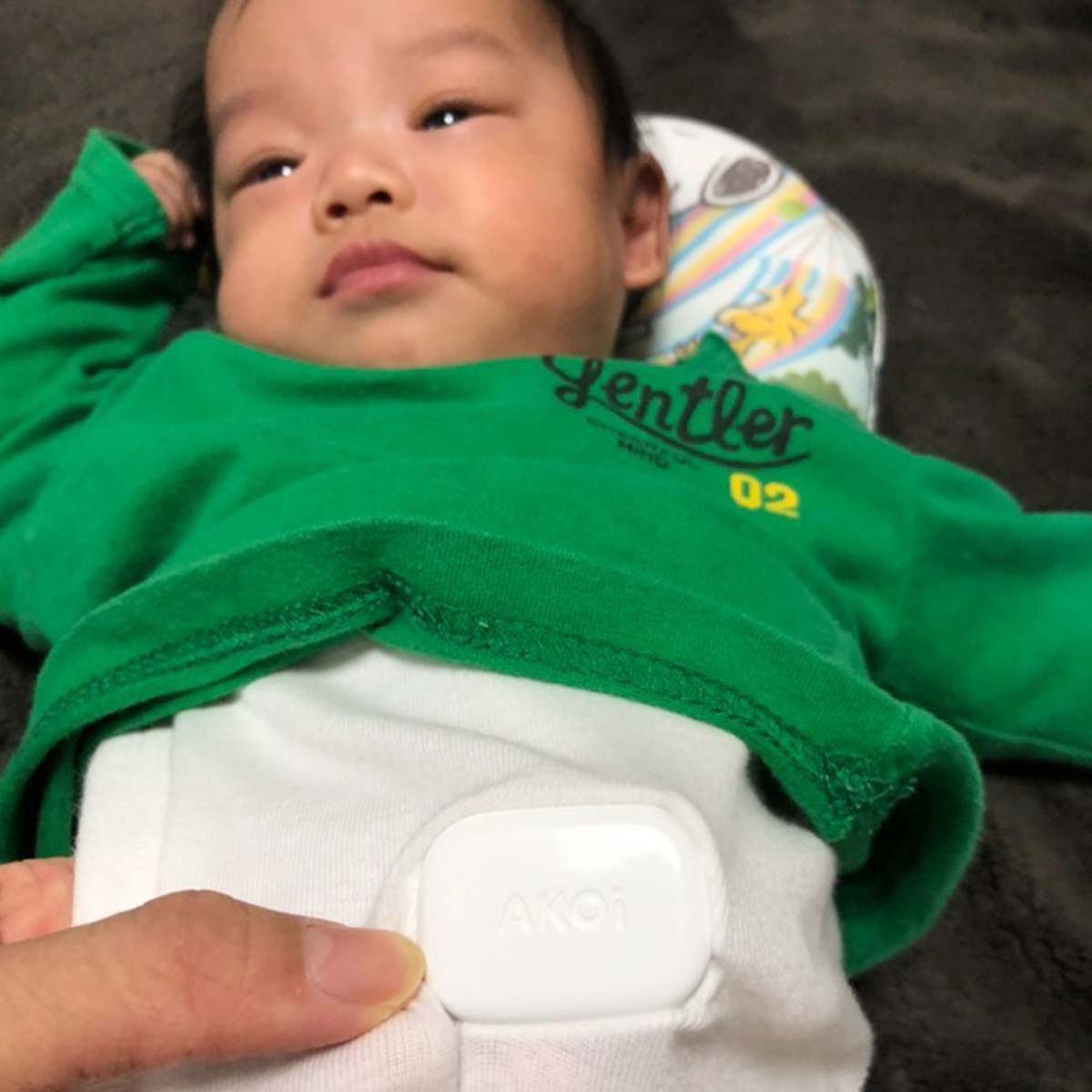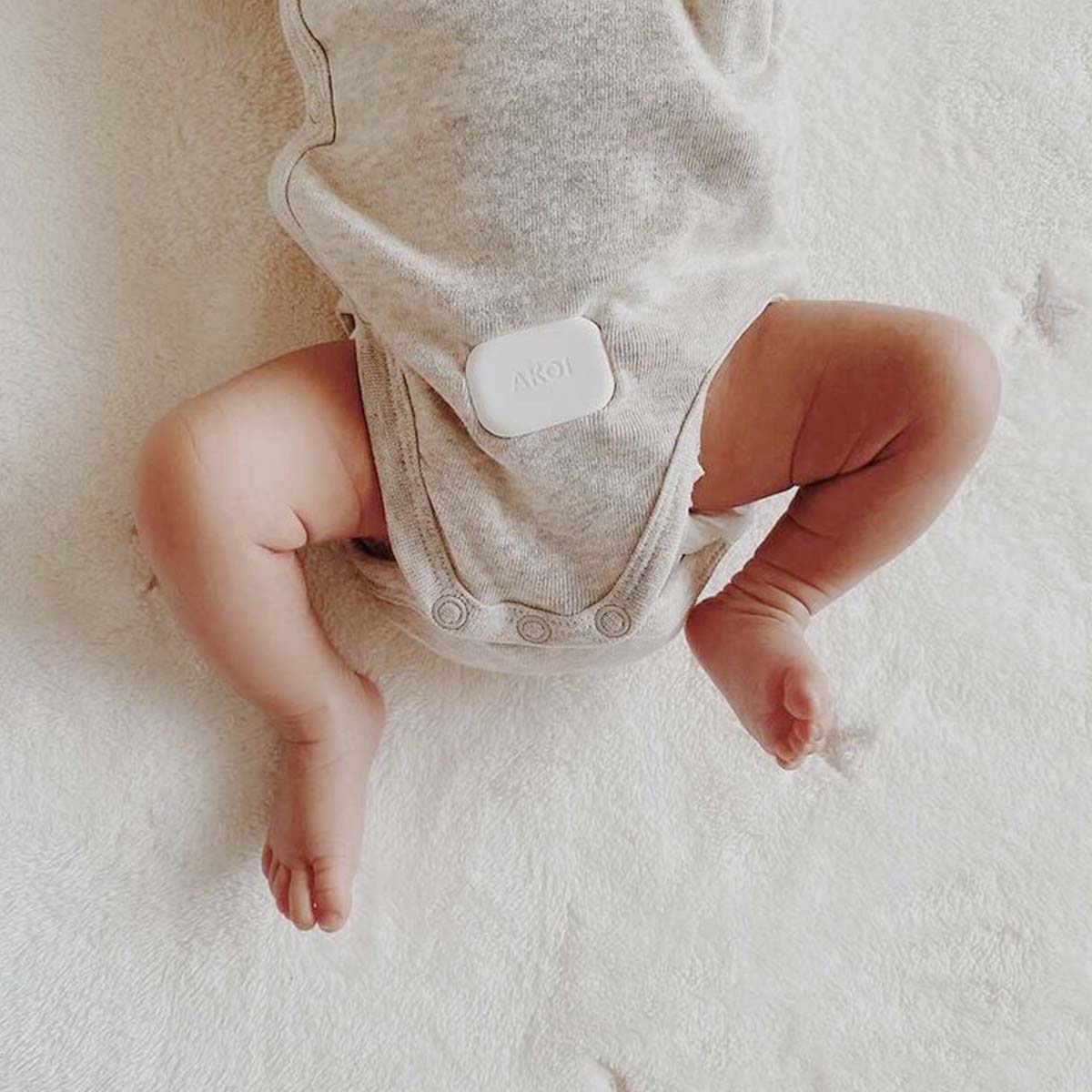 赤ちゃんの動き、寝返り、おむつ交換時期の感知ができるベビーケアアラーム「AKOi Heart」。