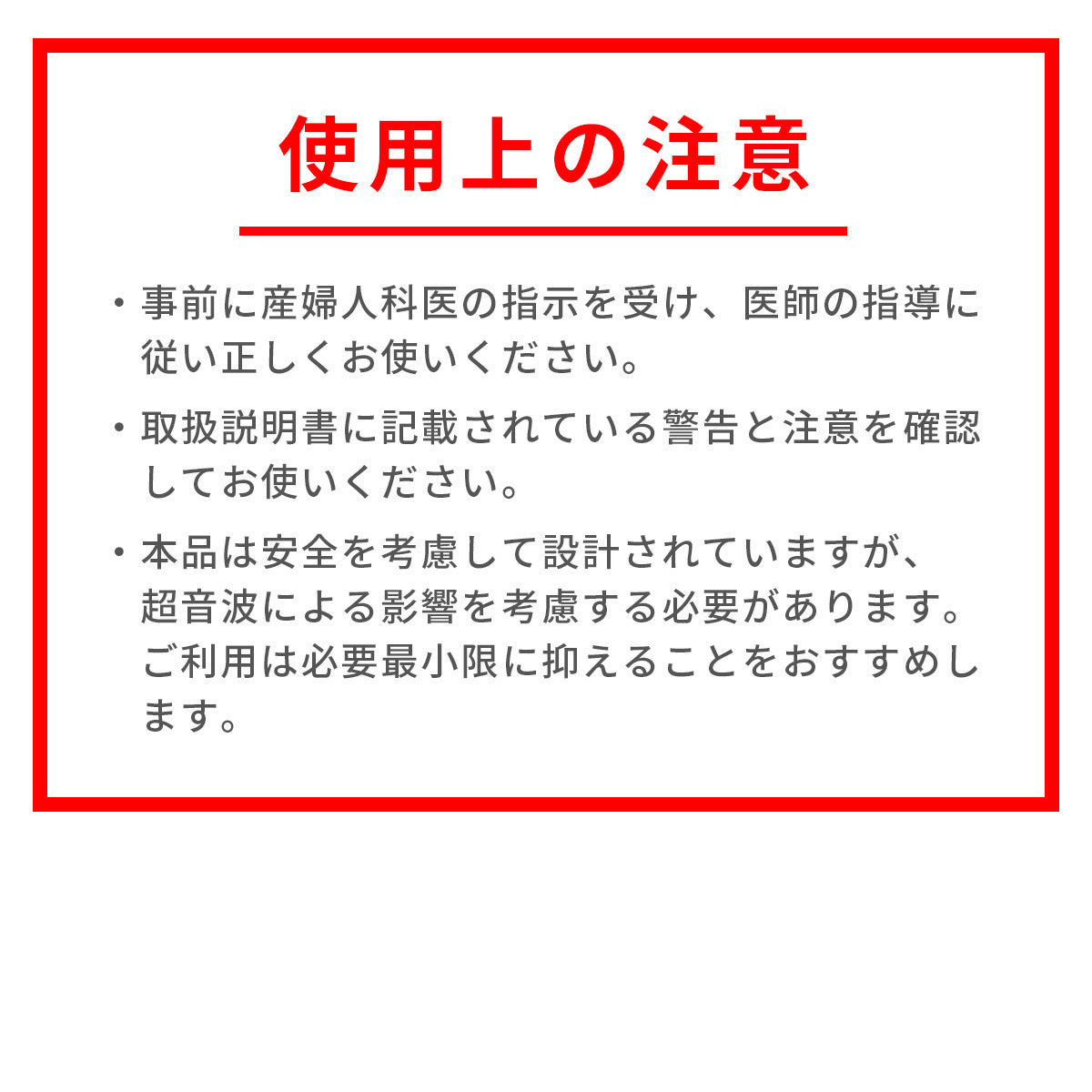 ・本品は安全を考慮して設計されていますが、超音波による影響を考慮する必要があります。