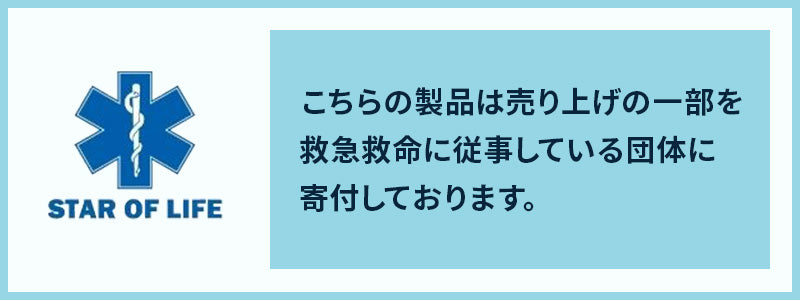 製品の売上の一部は、救急救命などに従事している団体に寄付されます!